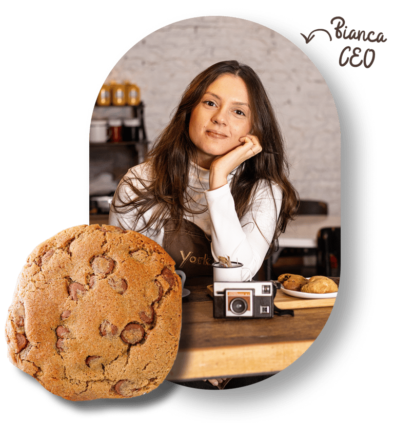 O tradicional cookie com massa de baunilha e pedaços de chocolate nobre e nozes.